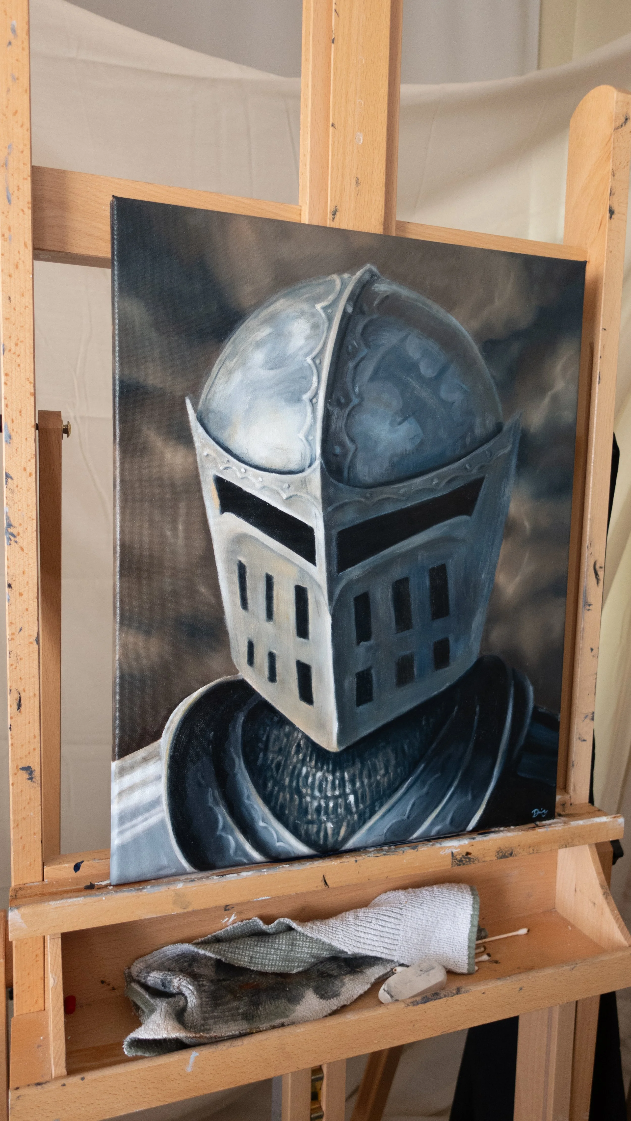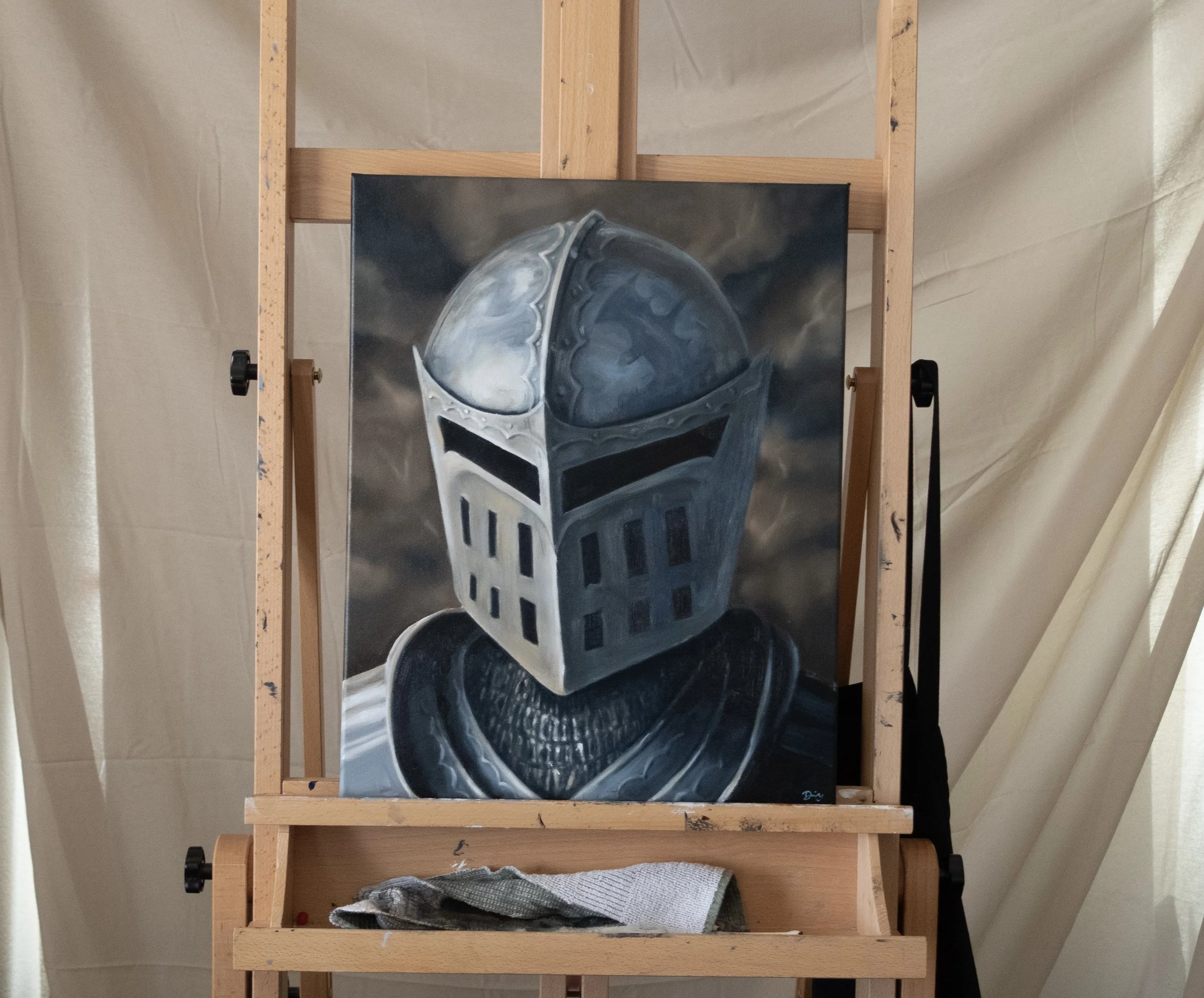 “The Knight” sets the tone of this fantasy series. We see the raising of a sword in “The Sword” peice and get to see the portrait of a knight. While the knight is not the one holding the sword they both play a part in this battle.